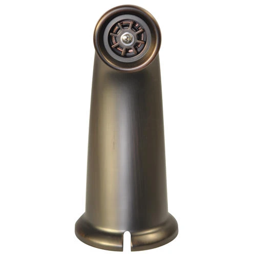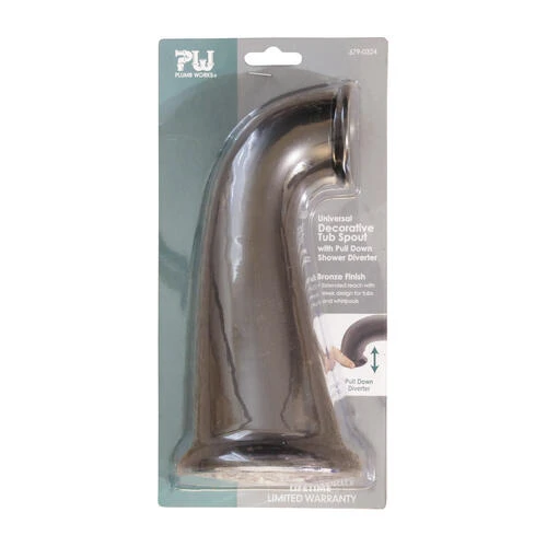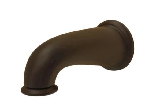 The Decorative Tub Spout in Oil Rubbed Bronze is constructed of metal to provide strength and durability. The spout is 8 ” long and has a 7-1/4″ reach to provide an abundance of clearance space. It features a pull down diverter and universal design to fit many different faucet brands.
